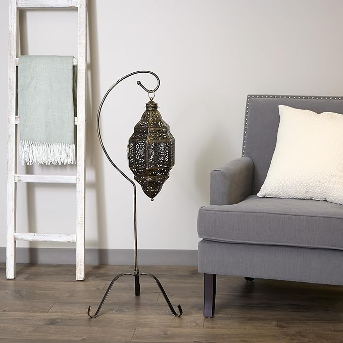 Zingz & Thingz Moroccan Style Candle Lantern Holder, Decorative Light Home Decor, Indoor & Outdoor, 41.25" Tall, Black with Stand