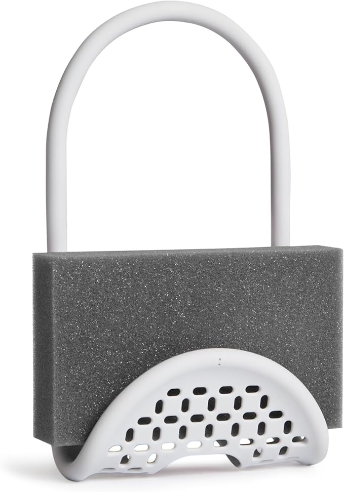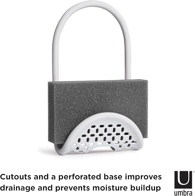 Umbra Sling Kitchen Sink Caddy Sponge Holder, Hangs Over Faucet or Divider, Single, White