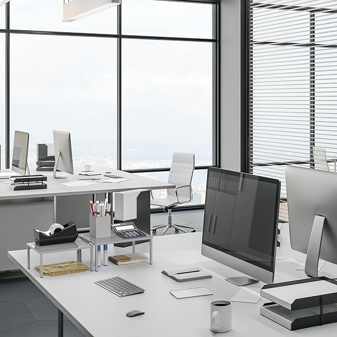 Simple Houseware Metal Top Expandable Stackable Kitchen Cabinet and Counter Shelf Organizer, Silver