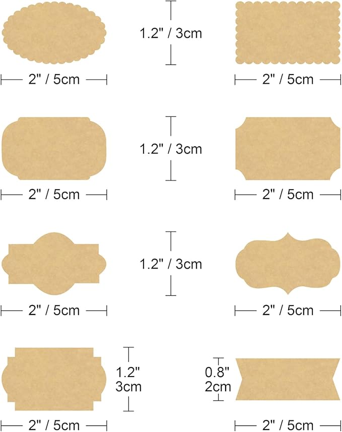Wisdompro Assorted Shape Label Stickers, Self Adhesive Gift Tag Stickers Blank Writable Labels for Essential Oil Bottles, Jars, Food Containers (256 Pcs, Small)