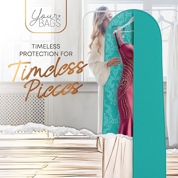 - WRINKLE-FREE TRAVEL & STORAGE - Lightweight gown garment bag for long dresses with a dual zipper, hanging loop, and ID window. Use it as a prom dress bag, bridal dress bag, or wedding dress bag for traveling so your dress stays clean and free from wrinkles and creases.