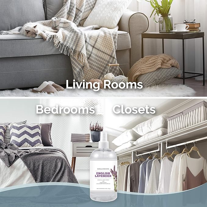 SMELLS BEGONE Air Freshener Home & Linen Spray - 16 oz, Pack of 2 - Odor Eliminator - Made with Essential Oils - English Lavender Scent