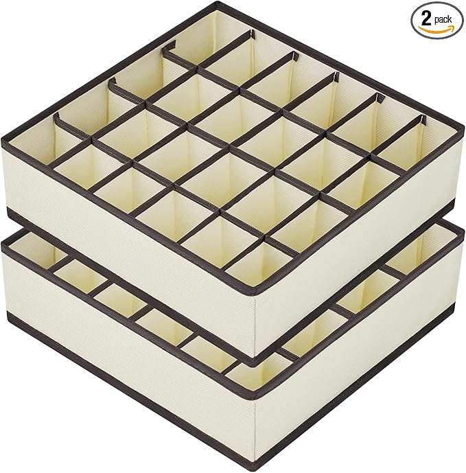 Joyoldelf Drawer Organizer 2 Packs, 24 Cell Collapsible Closet Cabinet Storage Boxes for Underwear, Socks, Bra, Handkerchiefs, Ties, Belts