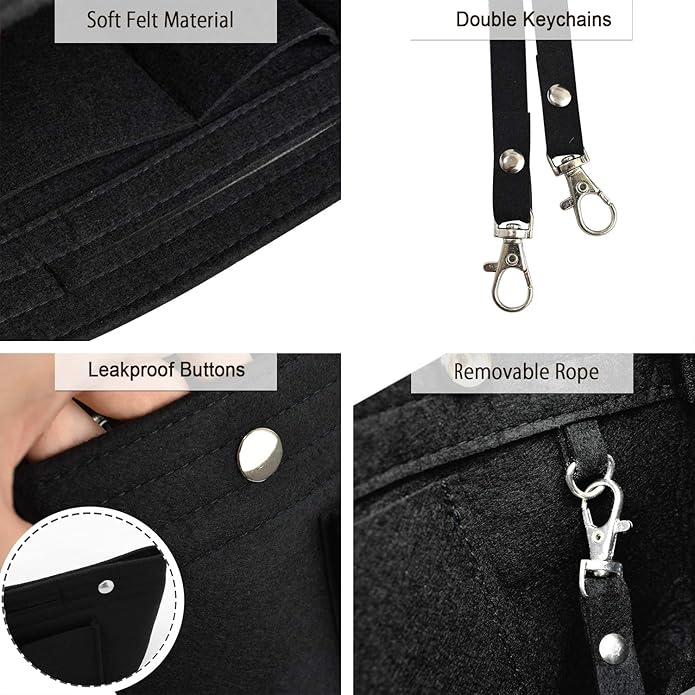 - MULTIPLE POCKETS - Insert organizer, total 9 pockets: 1 big capacity bag, 4 little liner insert purse tote, 4 little side pockets on exterior. The middle is open and with two buckles for closure, two holes on side for convenient to pick up but without take your other space