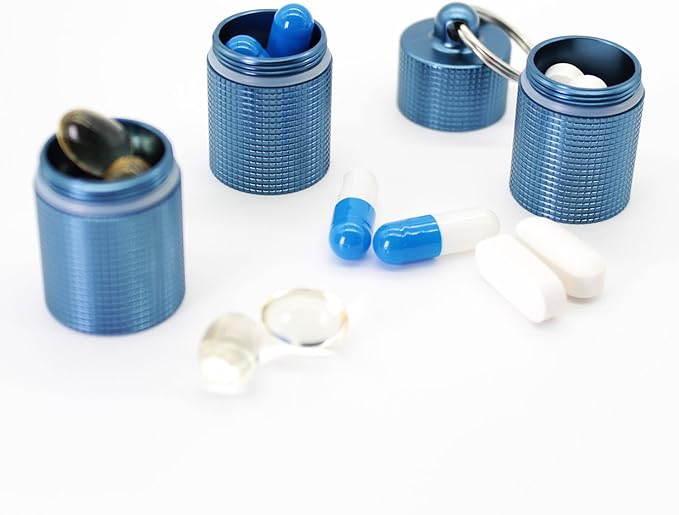 PPFISH Portable Daily Pill Case, 3 Compartments Anti-Skid Aluminum Alloy Waterproof Pill Box Dispenser, Small Pocket Pill Container, Keychain Pill Fob, Travel Pill Holder for Men Women