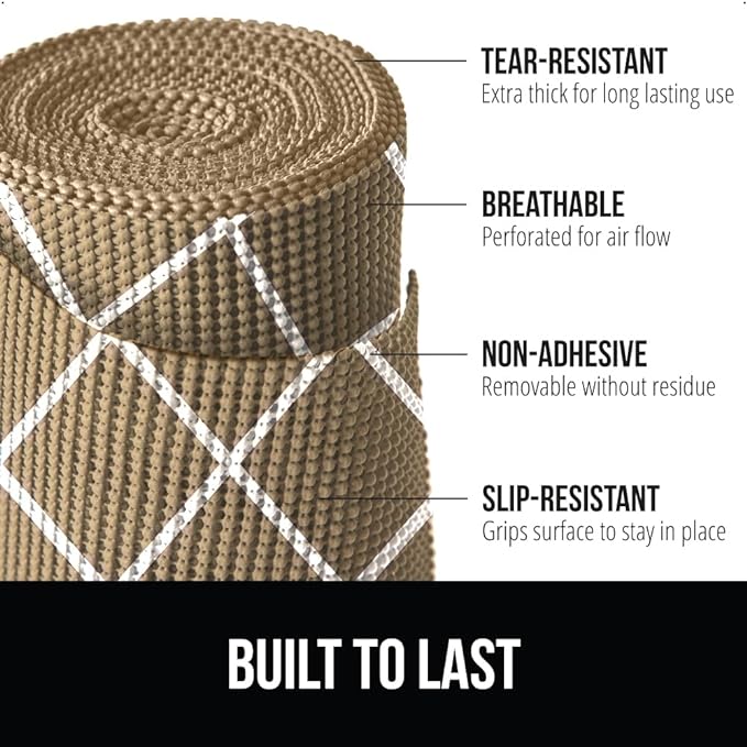 GORILLA GRIP powerGRIP Drawer Shelf and Cabinet Liner, Thick Strong Hold, Non-Adhesive Liners Protect Kitchen Cabinets and Cupboard, Bathroom Drawers, Easy Install, Breathable Mat, 20" x20', Beige