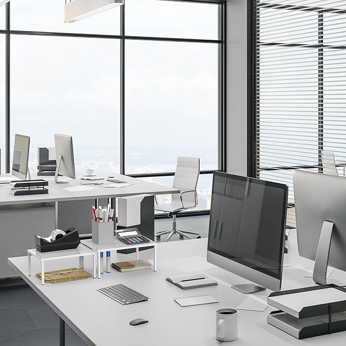 Simple Houseware Expandable Stackable Kitchen Counter Shelf Organizer, White, Metal Top, 11.25"L x 7.9"W x 5.4"H