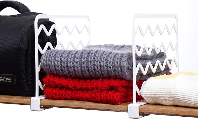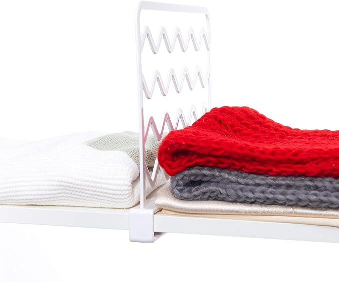 - VERSATILE USE: Maximize closet storage space, make your closet shelf, pantry or any shelf neat and clean.Help you easily to divide wide shelves to stack items such as clothing,sweaters, towels, blankets and linens into a neat high pile,It can also allow you divide the same shelf into different functional areas