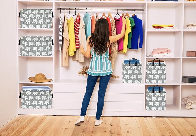KUNRO Rectang Storage Basket Gift Shelf Basket Storage Bin, Nursery Basket Organizer Box for With Handles for Room Deco (Elephant)