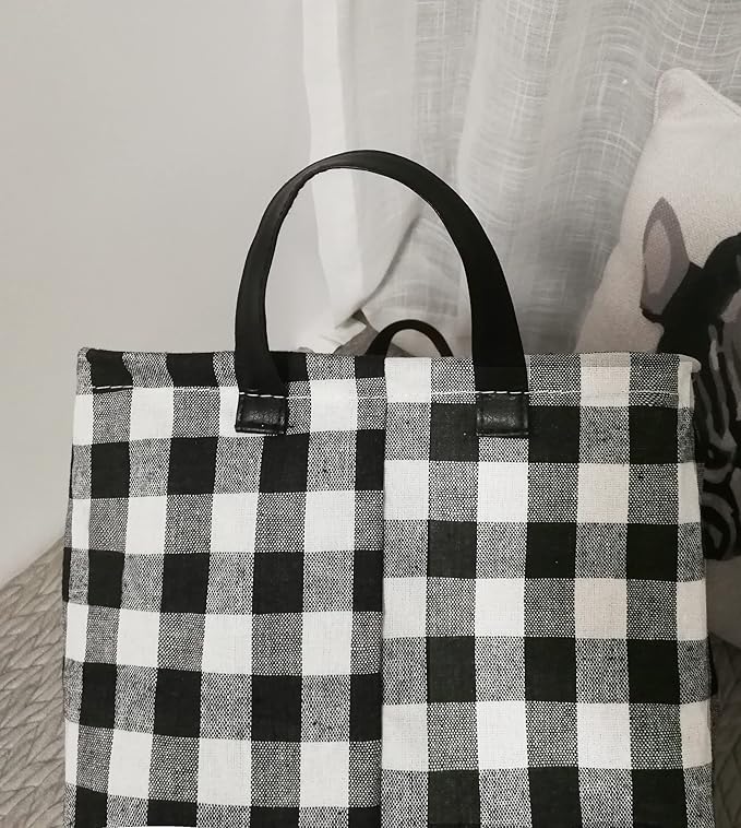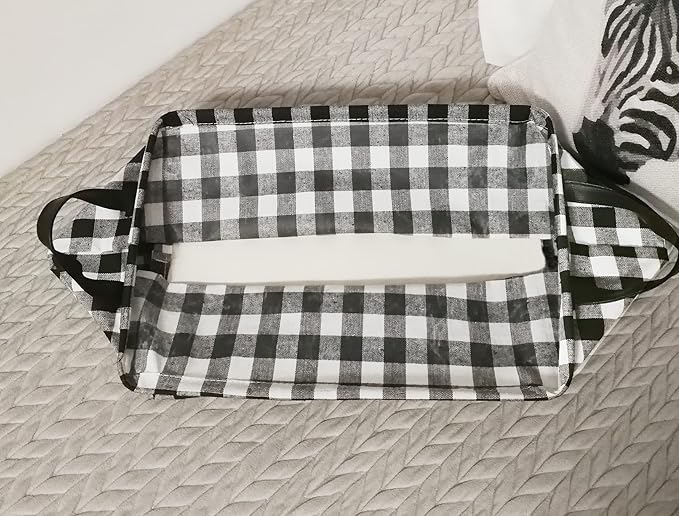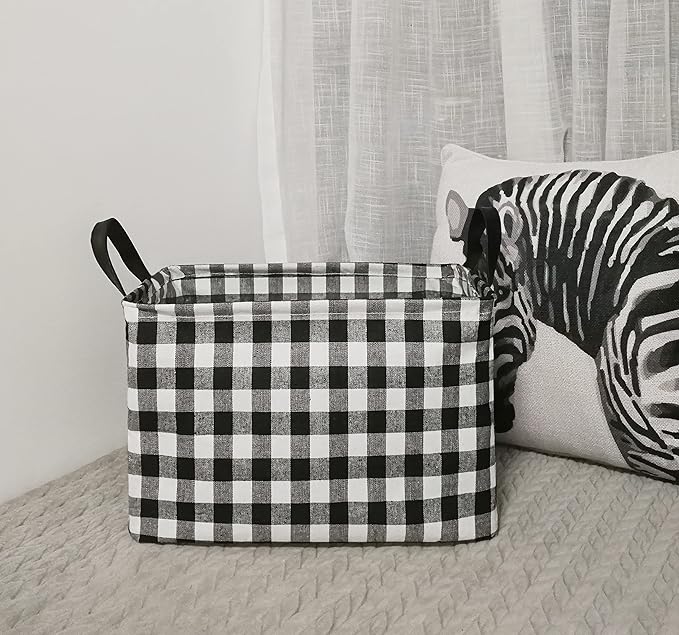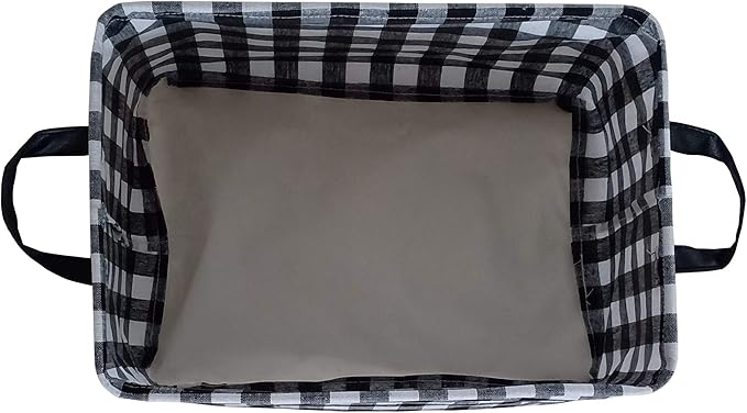 KUNRO Rectang Storage Basket Gift Shelf Basket Storage Bin, Nursery Basket Organizer Box for With Handles for Room Deco(Black grid)