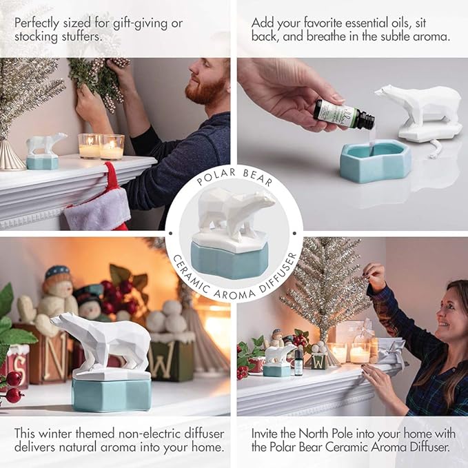 Ellia, Polar Bear Porcelain Aroma Diffuser, Holiday Décor for Essential Oils