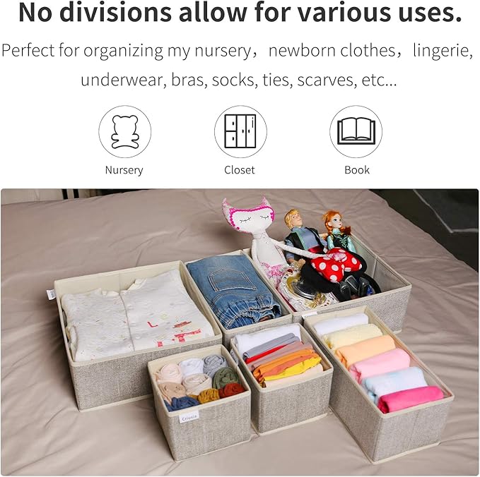 Criusia Underwear Drawer Organizer, 6 Set Foldable Underwear Drawer Organizer and Closet Dividers,Storage Box for Clothes, Socks, Underwear (6 Bins, Beige)