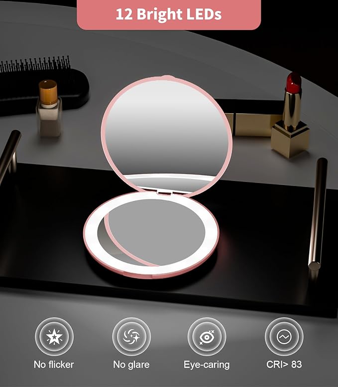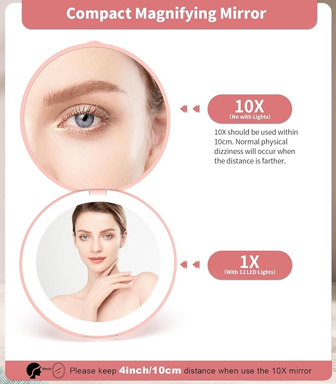 - 【Compact Mirror with Light】Simulates daylight LED lights create flawless makeup.