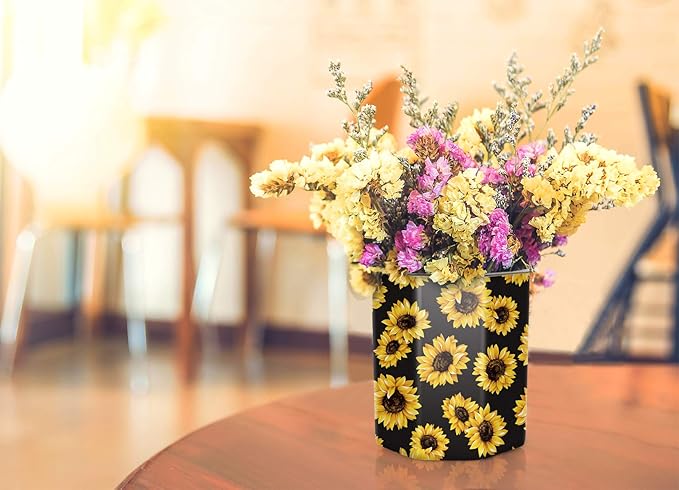 - Makeup brush holder for desk, our pencil holder is crafted from durable ceramic, it’s durable and sturdy. Unique sunflower design decor, upgrade style, larger capacity, more sturdy, the sunflower print has sleek and sophisticated design which will give your table or desk such a classy touch.