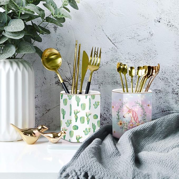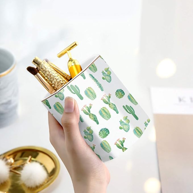- Makeup brush holder for desk, our pencil holder is crafted from durable ceramic, it’s durable and sturdy. Unique cactus design decor, upgrade style, larger capacity, more sturdy, the cactus print has sleek and sophisticated design which will give your table or desk such a classy touch.