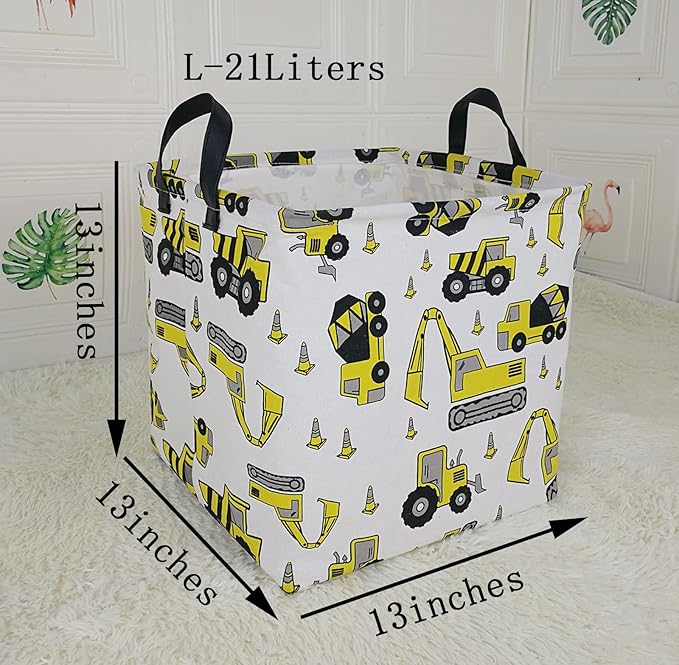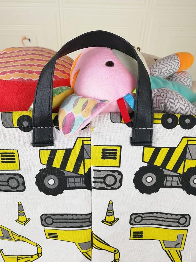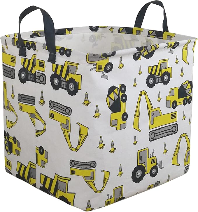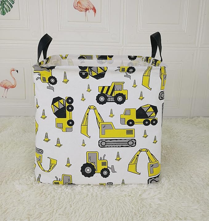 KUNRO Square Storage Basket Gift Shelf Basket Storage Bin, Nursery Basket Organizer Box for With Handles for Room Deco (Excavator)