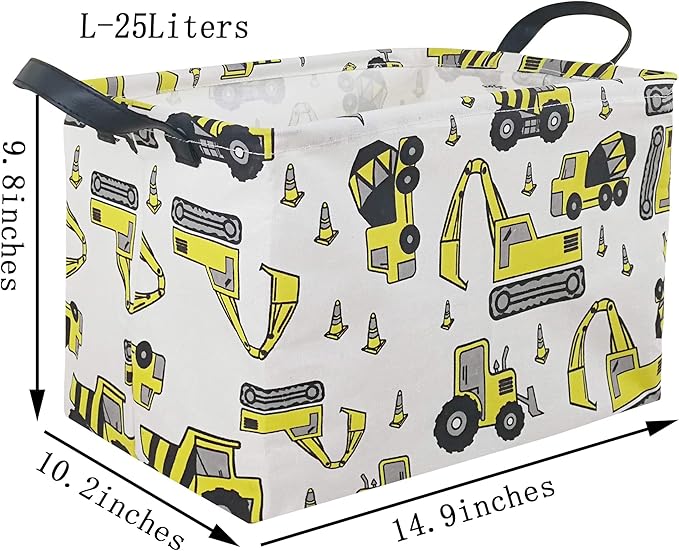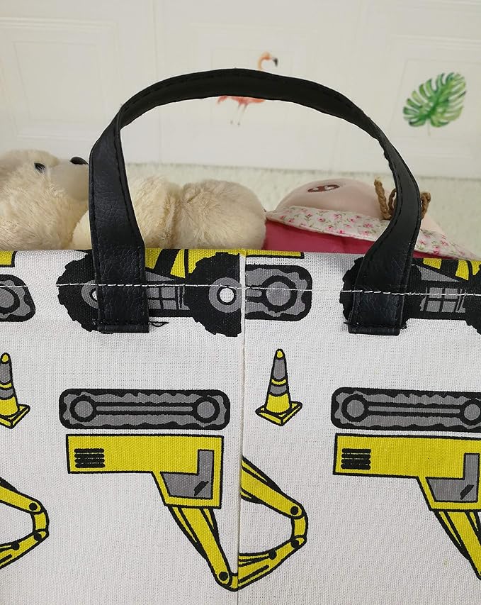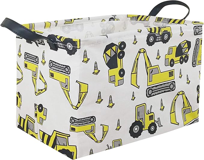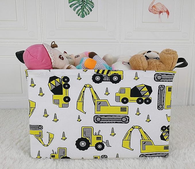 KUNRO Rectangle Yellow Storage Basket Gift Shelf Basket Storage Bin, Nursery Basket Organizer Box for With Handles for Room Deco (Excavator)