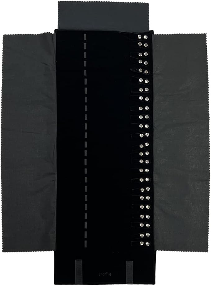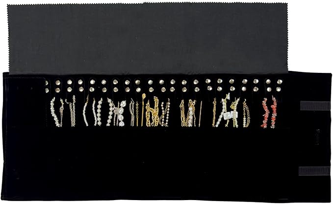 - Easy to use: Inside the roll, there are 24 necklace/bracelets holders with button design. Just hang your necklaces or bracelets on the holder and roll it up and use the hook-and-loop as closure