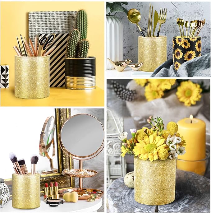 - High-Quality Multi-functional Decor Organizer: It is a multi-purpose organizer cup holder, it is a perfect decor for your desk, office, home. It is used a pen holder, also can be used as a makeup brush holder, whatever you want, fashionable holder, glitter and lightweight.