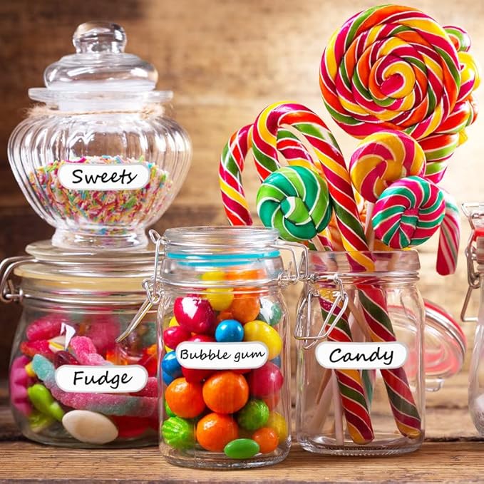 - Wide compatibility: these adhesive label stickers fit different sizes of food storage containers, suitable for jelly, spice,, herb, candy, cookie or seasoning jars, canning jar, round bottles, wine glasses, coffee cups or tea boxes, canisters, folders, office supplies, classroom bins, widely applicable in home, pantry, laundry room, cabinet, bathroom, linen closet and more occasions