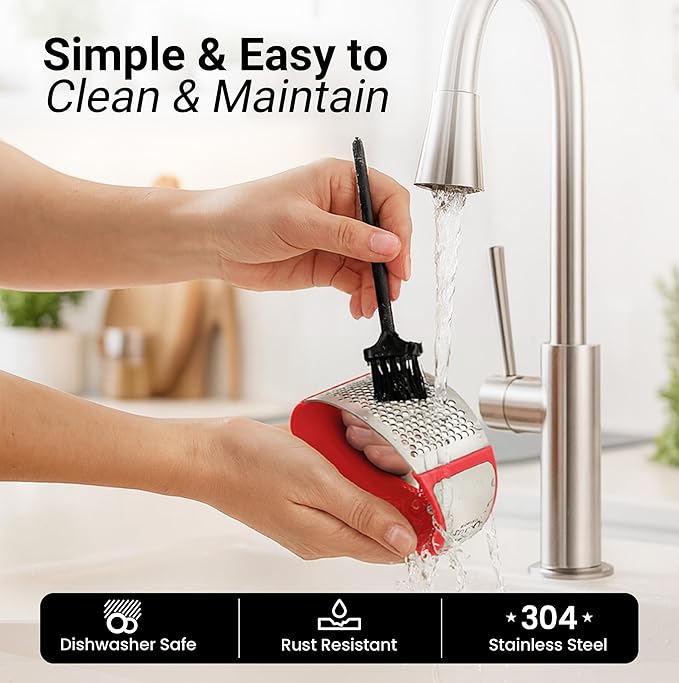 - ๐ง CLEAN IN SECONDS: This garlic press rocker can be cleaned by putting under a tap of running water and scrub with a soapy cloth or pop it in your dishwasher. Either way, it will come out 100% clean and free from garlic residue.