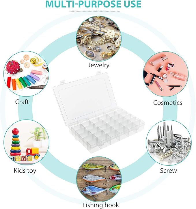 - Special Feature : 36-grid layout, Clear plastic construction, Horizontally adjustable dividers, Lightweight and portable, Snap-close lid 36-grid layout, Clear plastic construction, Horizontally adjustable dividers, Lightweight and portable, Snap-close lid
