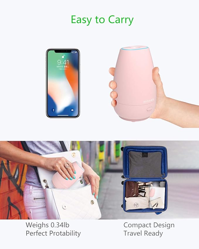 SOICARE Car Diffuser,Small Portable Car Essential Oil Diffuser with Built-in USB Cable,Mini Aromatherapy Diffuser for Travel/Office/Home (Pink)