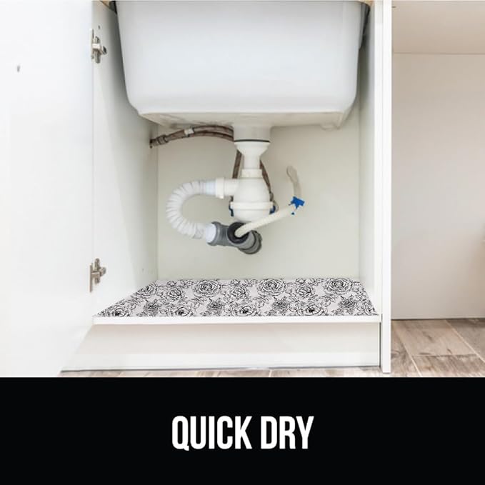 - 100% WATERPROOF: the Gorilla Grip LeakGuard liner is constructed from ultra thick and absorbent felt fabric on the topside, and a 100 percent waterproof bottom layer, the Gorilla Grip Under Sink Liner is designed to quickly absorb and disperse liquids while providing a strong barrier between liquids and cabinets
