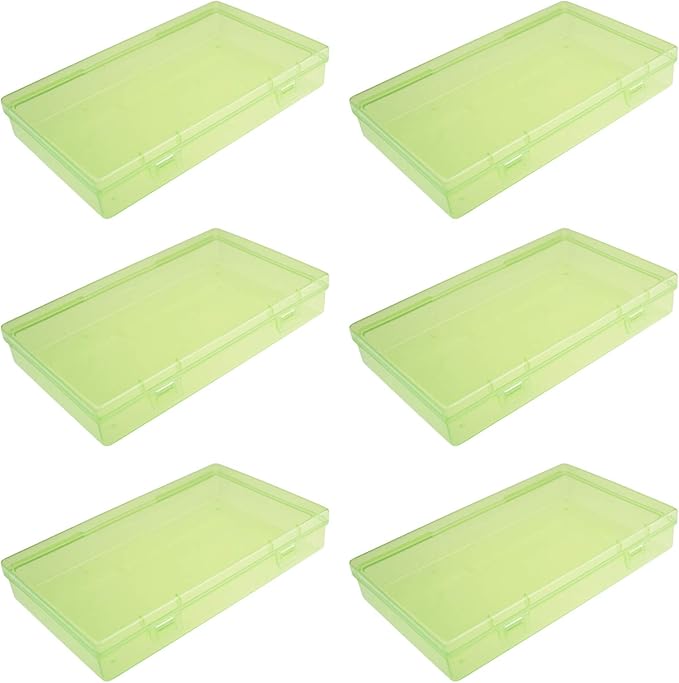 LJY 6 Pieces Rectangular Empty Mini Clear Plastic Organizer Storage Box Containers with Hinged Lids (7.1 x 4.3 x 1.2 inch, Green)