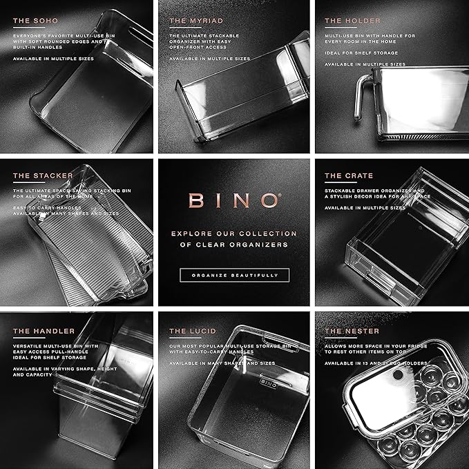 BINO | Plastic Storage Bins, Large - 2 Pack, White | THE SOHO COLLECTION | Pantry Organizers and Storage Containers Fridge Organizer Bins Kitchen Cabinet Organizer Medicine Cabinet Bin