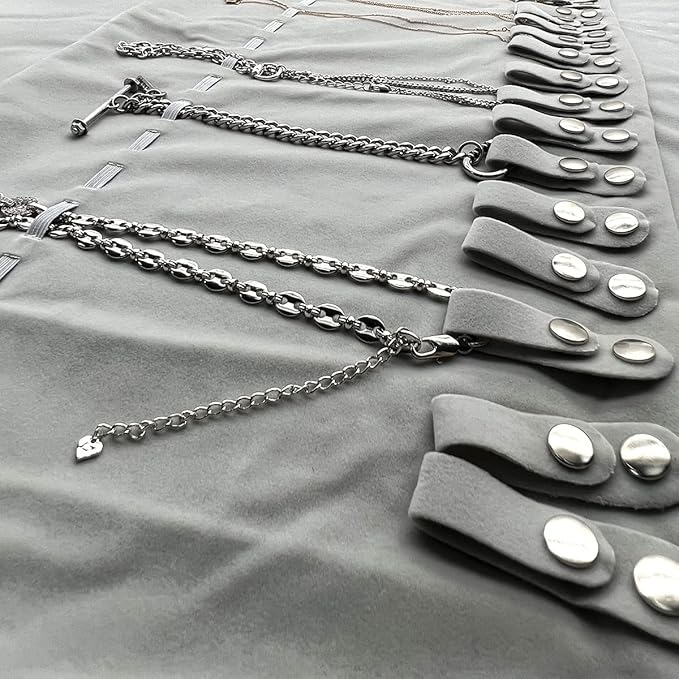 - Easy to use: Inside the roll, there are 24 necklace/bracelets holders with button design. Just hang your necklaces or bracelets on the holder and roll it up and use the hook-and-loop as closure