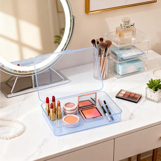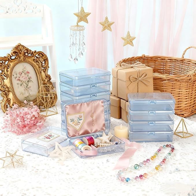 LJY 12 Pieces Rectangular Empty Mini Clear Plastic Organizer Storage Box Containers with Hinged Lids (4.5 x 3.3 x 1.1 inch, Blue)