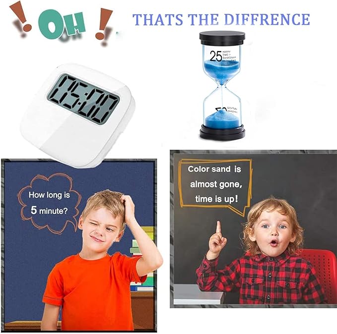 - Best Time Management Tool: The hourglass timer 25 minutes help your kids do things more efficiently and develop a strong sense of time. The sand clock 25 minutes can be used for cooking, games, classroom, study, desk office decorative or teachers use