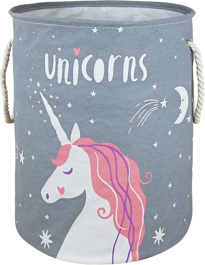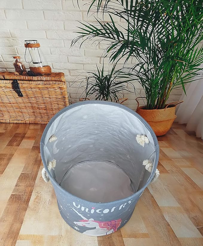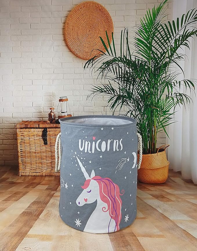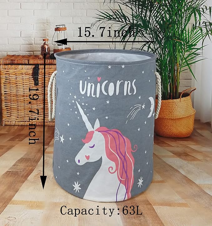 - 【Kids Hamper Girls Laundry Basket Girls Unicorn Room Decor Details 】 Size–15.7"L x 15.7"W x 19.7"H,Cotton rope handle, Waterproof, Collapsible, Large capacity .The hamper suitable for 30+ Clothes ;Weight 10.6ounces, Lightweight.The unicorn laundry baskets can be used as storage basket ,large organizer bins,dirty laundry hamper,girls toy box, nursery hamper,kids clothes basket, baby shower gift basket
