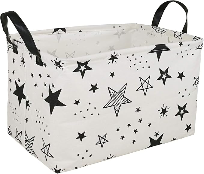 KUNRO Rectang Storage Basket Gift Shelf Basket Storage Bin, Nursery Basket Organizer Box for With Handles for Room Deco (Star)