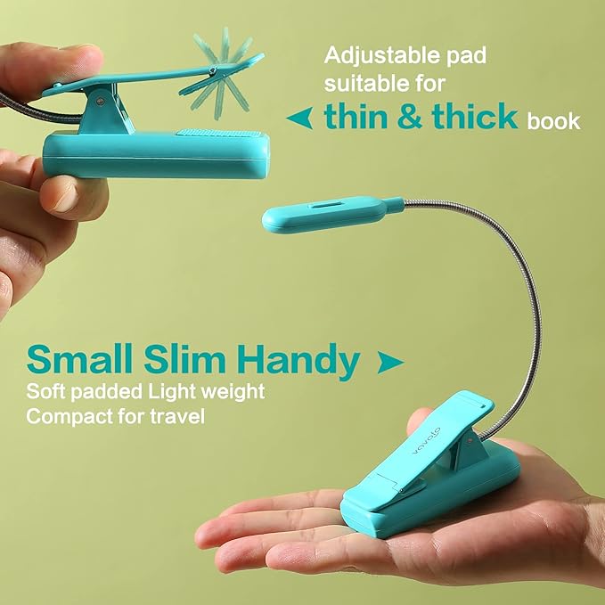 - 【360°Flexible Goose Neck & Non-slip Clip Design】- The Vavofo's reading light has the 360 degree adjustable neck with multi use non-slip clip which allows you to position the light exactly where you need it, creating the perfect private reading space for you while reading in bed, in college dorm, or on a plane, train, or bus. It can also be placed on the tabletop, work surface, etc. The lightweight, portable, & travel-friendly only 2.59 oz weight. 2 Pack choice is more convenient for you.