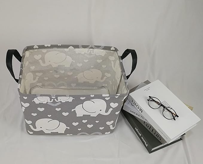 Rectangle Gift Storage Basket Home Shelf Storage Basket Organizer Box Clothes Laundry Hamper Nursery Basket Laundry Basket with Handles (love elephant)