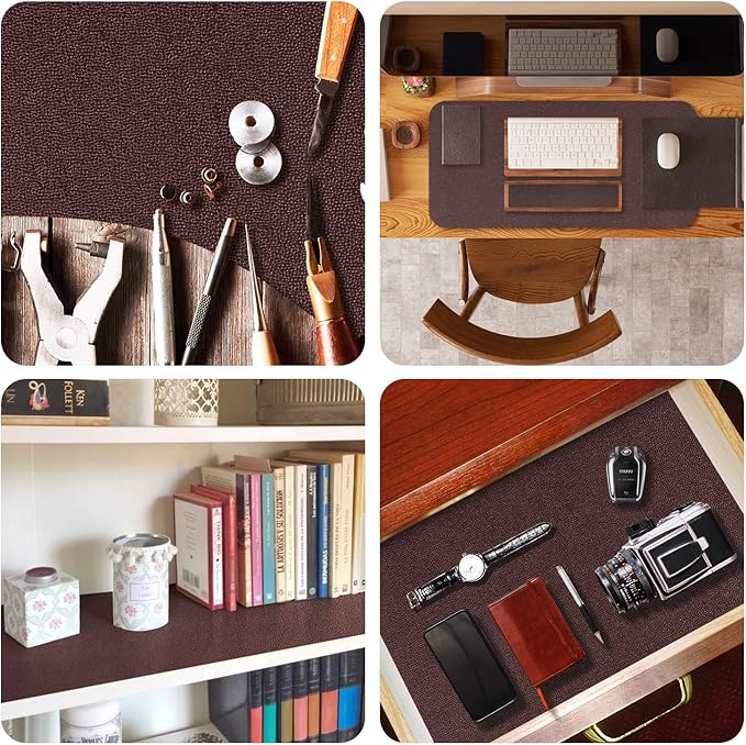 - Unique Material Design: Made of foam material with inner nylon mesh, with the leather like surface design, our shelf & drawer liner is anti-skid and cushioned. Our cabinet liner is a great choice for your pantry, kitchen, bedroom dresser
