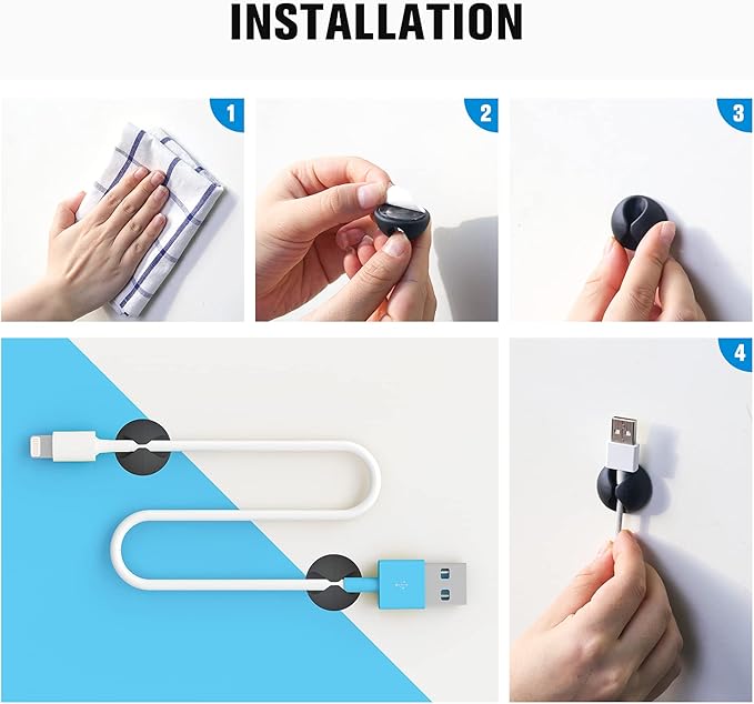 - No trace after removal: Our cord clips can be reused without leaving any traces. Will not cause any damage to the desk or car. The upgraded design is more intimate