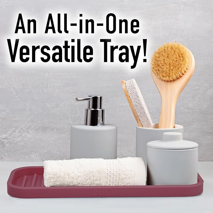 Zulay Kitchen (9x3.5) Silicone Sponge Holder for Kitchen Sink - Flexible Multipurpose Soap Tray - Sink Organizer for Kitchen, Bathroom, Makeup, Trinkets & More (Wine Red)