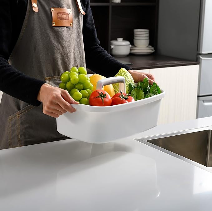 ALINK Large Plastic Shower Caddy Tote, Portable Storage Caddy Basket Organizer with Handle for Dorm, Bathroom, Tool, Garden, Kitchen, Cleaning Supplies - White