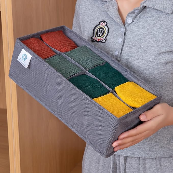 Qozary 3 Pack Sock Underwear Drawer Organizer Dividers, Non-Woven Fabric Collapsible Cabinet Closet Storage Boxes for Clothes, Socks, Lingerie, Underwear, Tie, Belt, Baby, Bedroom (Gray, 8 Cells)