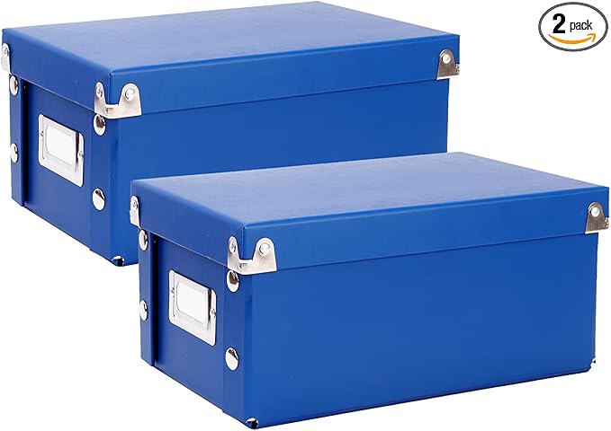 Snap-N-Store Index Card Holder Storage Box - Collapsible Organizer Box fits 1100 Flash Cards - Business, Recipe, or Note Card - 4 x 6, 2 Pack, Classic Blue
