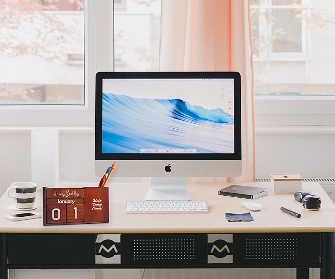 - ✔ORGANIZE YOUR DESK: Perfect organization tool for your office desk, your work from home desk or a kitchen counter. Know what date, week day and month easily. Use the pen holder to keep your pens and pencils organized. Start your morning ritual with this beautiful piece. Set your date in the morning and kick start your day.