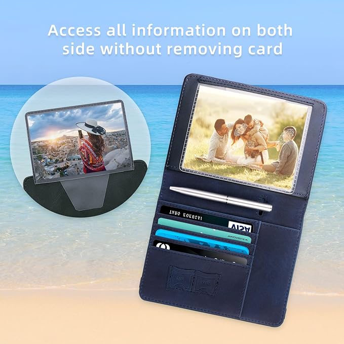 - 【MULTIPURPOSE SLOTS】This passport and vaccine card holder combo has large storage, which includes 1 transparent card slot, 2 passport slots, 4 cards slots for bank card, credit card, driver license and id card, 2 SIM card slots and 1 pen holder. Travel with our passport case makes you easy to access travel documents during boarding and transit.