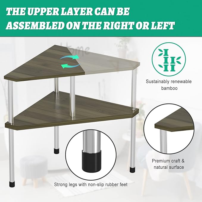 - EASY ASSEMBLY & PRACTICAL: Clear and easy-to-read instructions, just a few steps to install with hardware; 2 tiers designed free-standing shelf saves storage space and the shelves can be used on right or left corners