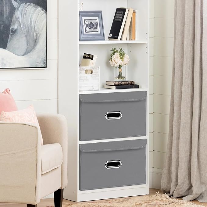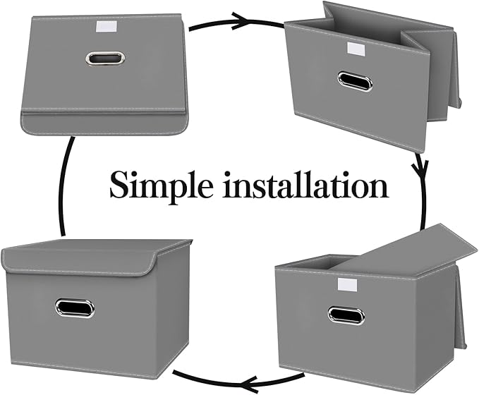 - ☛【High Quality】: The stotage bins with lid made of high-quality non-woven fabric, the handle is made of metal stainless steel, durable, safe and environmentally friendly, no peculiar smell or other irritating smell.