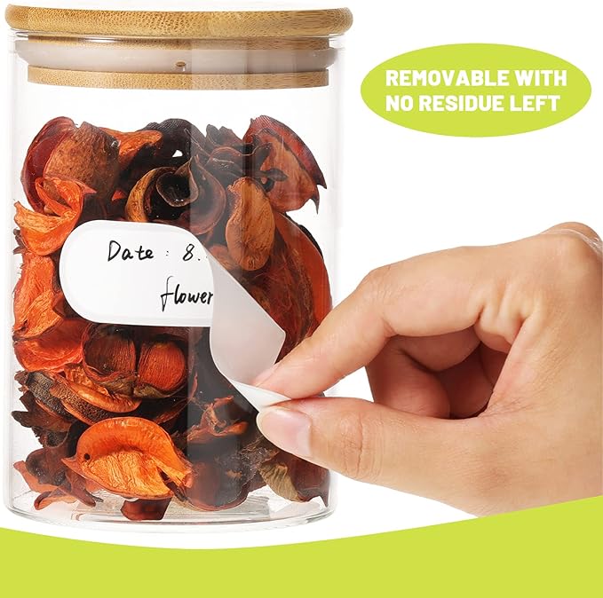 - Wide compatibility: these adhesive label stickers fit different sizes of food storage containers, suitable for jelly, spice,, herb, candy, cookie or seasoning jars, canning jar, round bottles, wine glasses, coffee cups or tea boxes, canisters, folders, office supplies, classroom bins, widely applicable in home, pantry, laundry room, cabinet, bathroom, linen closet and more occasions