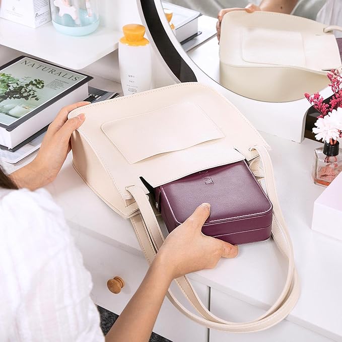 - 💎【Organizer Box Dimension】-The organizer case is small: 8.26"(L)x5.5"(W)x1.7"(H)/21x14x4.5cm,And the jewelry box is very lightweight and portable,It is easy to carry in your handbag or luggage and keep all your jewelry well organized. It is convenient for journey, travel, weekend trip or business trip.