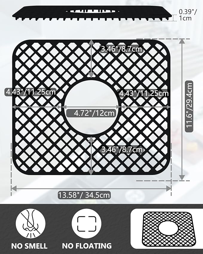 - Multi-Functional Kitchen Essential - This silicone sink protector doubles as a versatile kitchen helper.Use it as a: Non-slip pad for cutting boards; Heat-resistant trivet for hot pans; Cushioned mat for food prep; Stable base for pet bowls. The standard 13-9/16" x 11-5/8" size fits most sinks. Lightweight yet sturdy, it transitions easily between sink, counter, and stove. The perfect all-in-one kitchen sink mat for modern households.